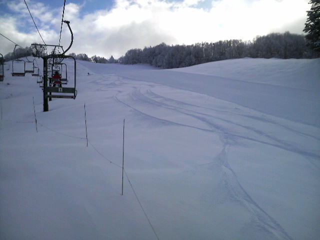 このスキー場はピステンバーンのが少ない 数少ないゲレンデです! 1月23日(土) 天候:時々時々チョット このラインはTamo達が着けました! ここも滑れます ここもです こんなに贅沢な山なのに・・・ まだこんな所もあるんです その名は タコチコース 約13kmのツアーコースで所々でパウダーが食えちゃう! もちろん使用ボードは 今年大活躍中の10”モデルで登場する パウダー向けマウンテンボード! 調子が良すぎて 今年はコイツの使用率がかなり高い では